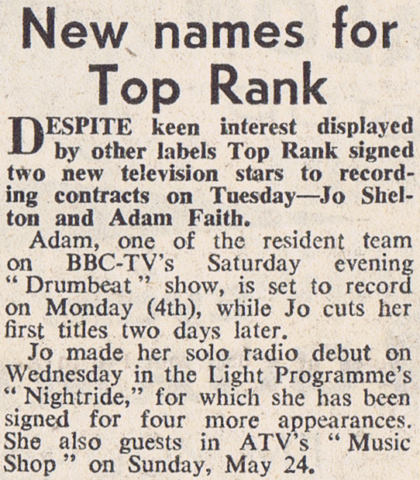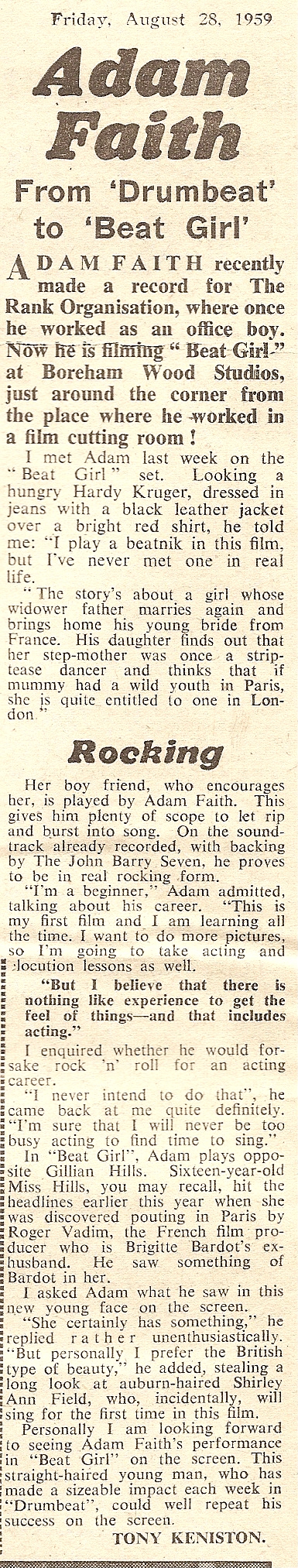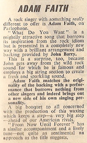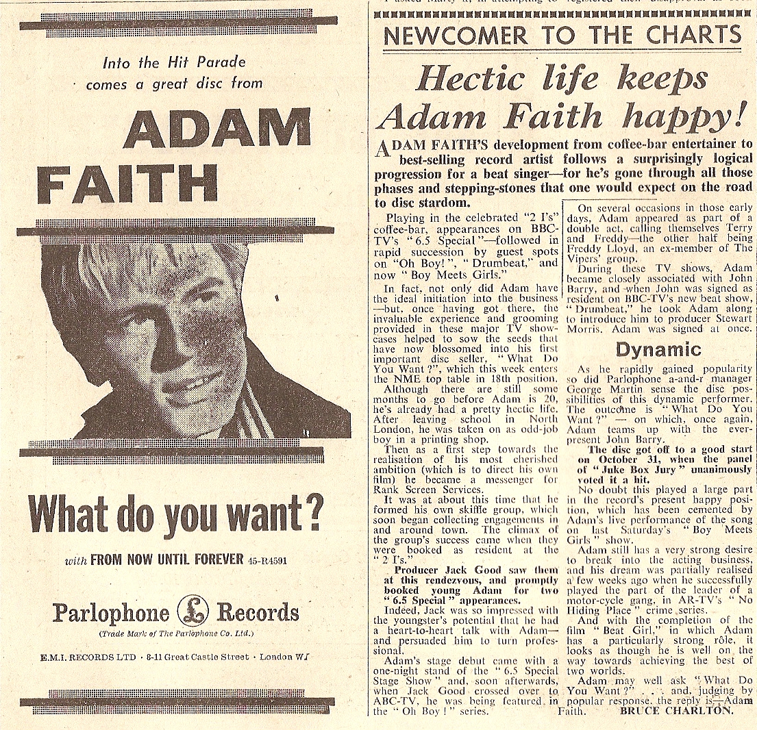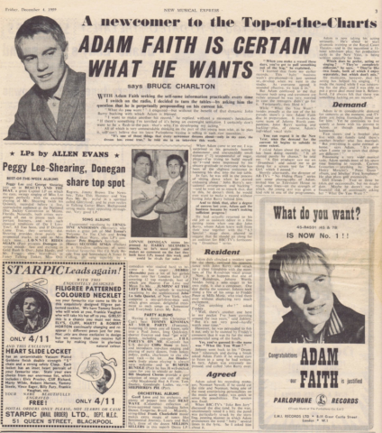 Adam Faith Articles from the New Musical Express, 1959